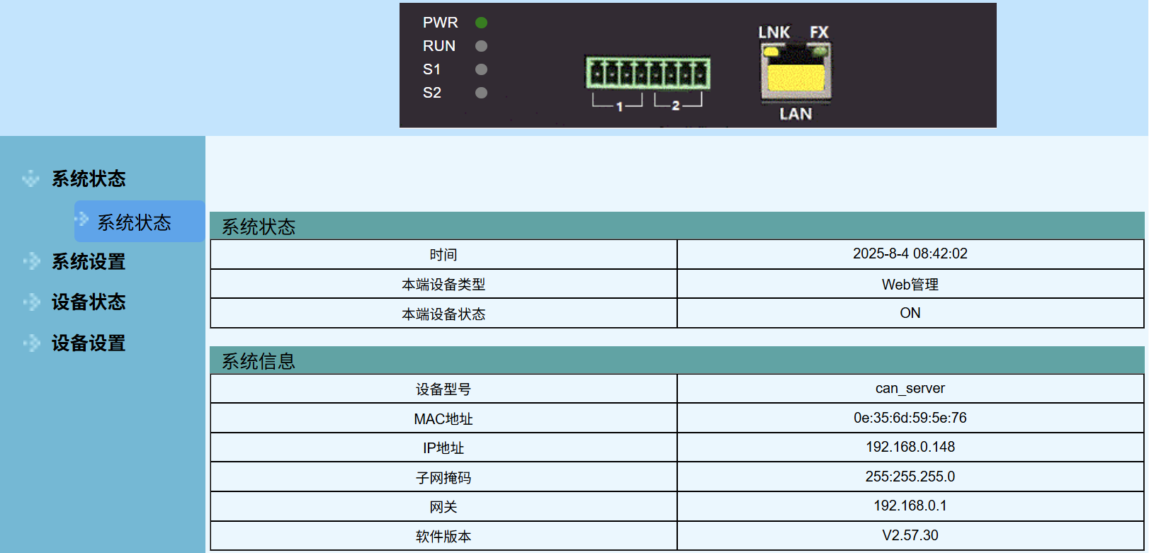 業(yè)務(wù)端口描述 | 1個CAN接線端子接口,1路串口,1路百兆以太網(wǎng)電口 |
