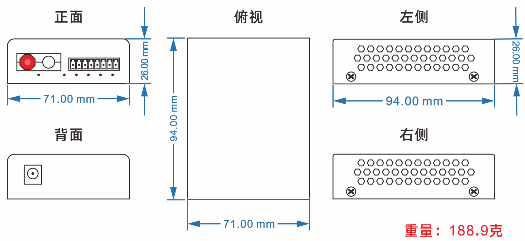 重量 | 外置電源/內(nèi)置電源:0.190Kg/臺(tái) 0.399kg/臺(tái) |