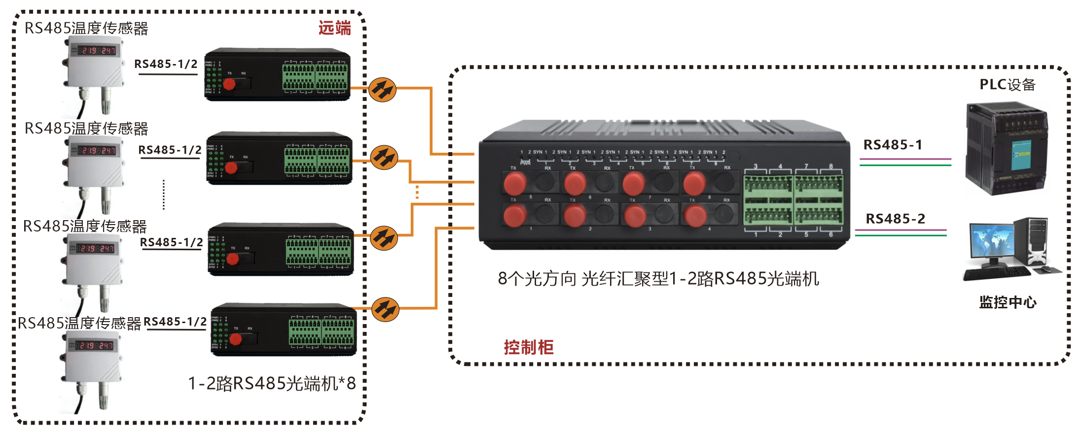 產(chǎn)品功能描述 | 8路匯聚光口RS485光端機(jī) |