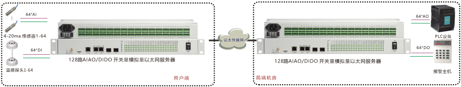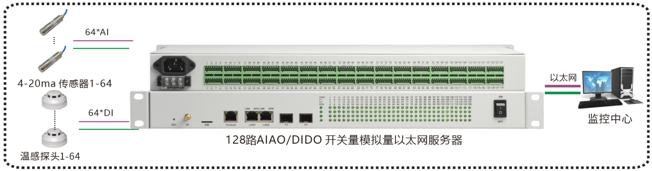 | 產(chǎn)品功能描述 | 在以太網(wǎng)/4G/WiFi上傳輸128路DI/DO/AI/AO,機(jī)架式 |