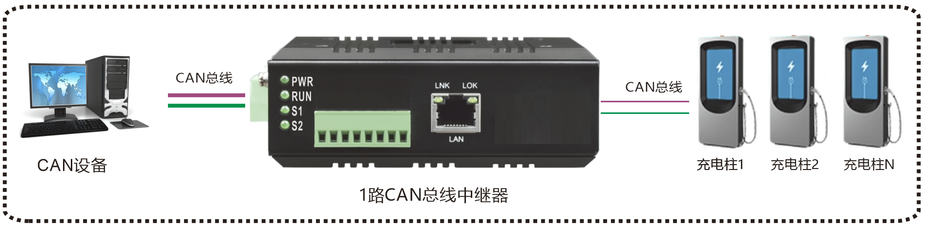 ◆ CAN總線隔離器,能實(shí)現(xiàn)CAN網(wǎng)絡(luò)的中繼功能,能將不同速率的CAN網(wǎng)絡(luò)之間的數(shù)據(jù)存儲(chǔ)轉(zhuǎn)發(fā)。主要應(yīng)用如下: