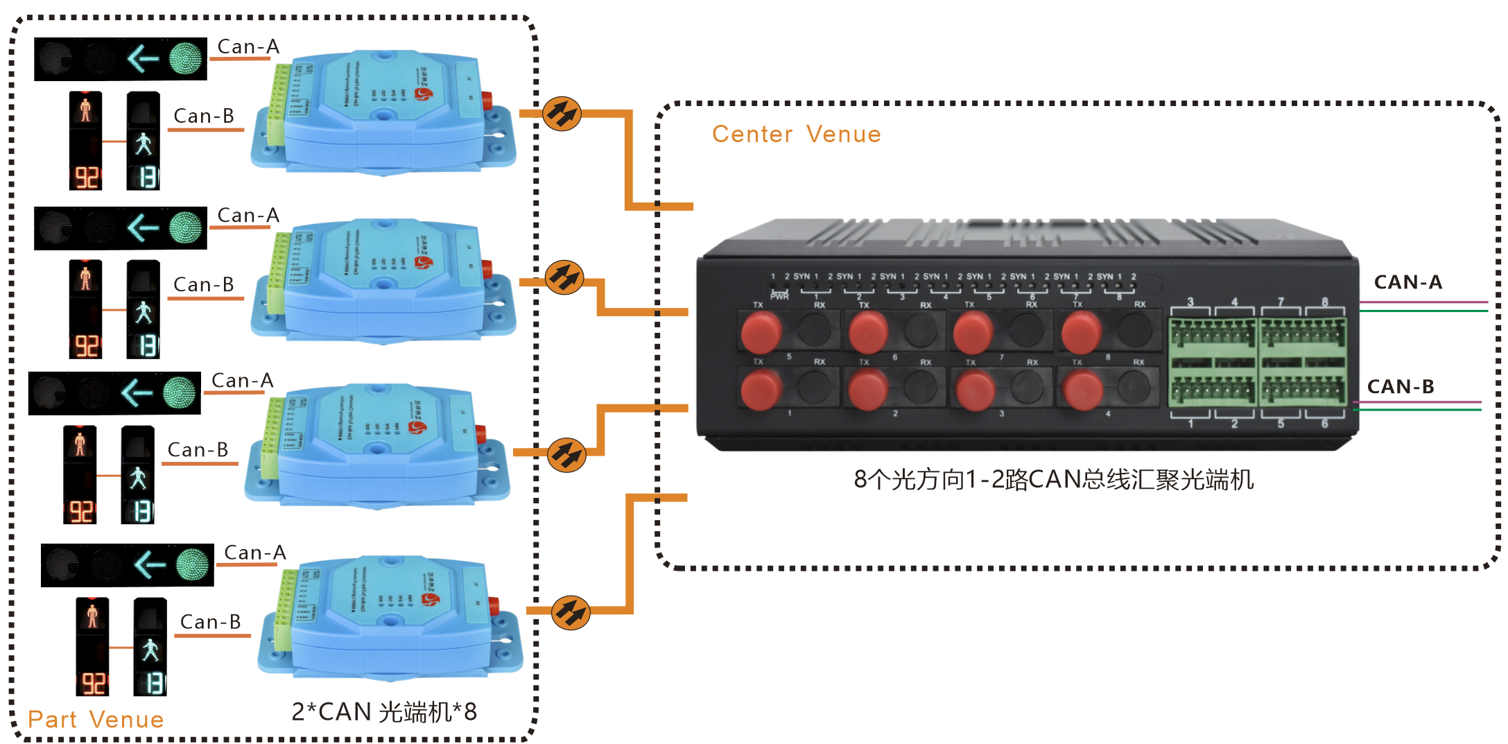| 產(chǎn)品功能描述 | 8路匯聚光口1-2路CAN總線光端機 |