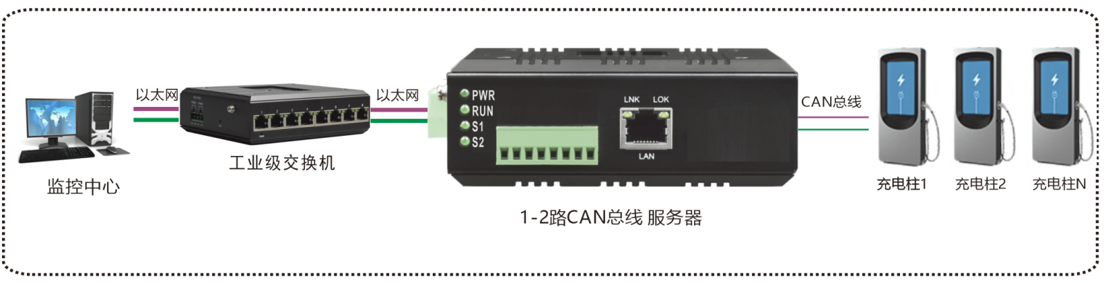 | 業(yè)務(wù)端口描述 | 1-2個CAN接線端子接口,1路百兆以太網(wǎng)電口 |